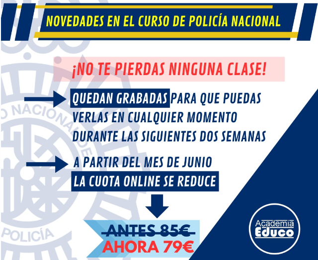Mensualidad: 60 euros (35 euros para alumnos matriculados en el curso de Policía Nacional)